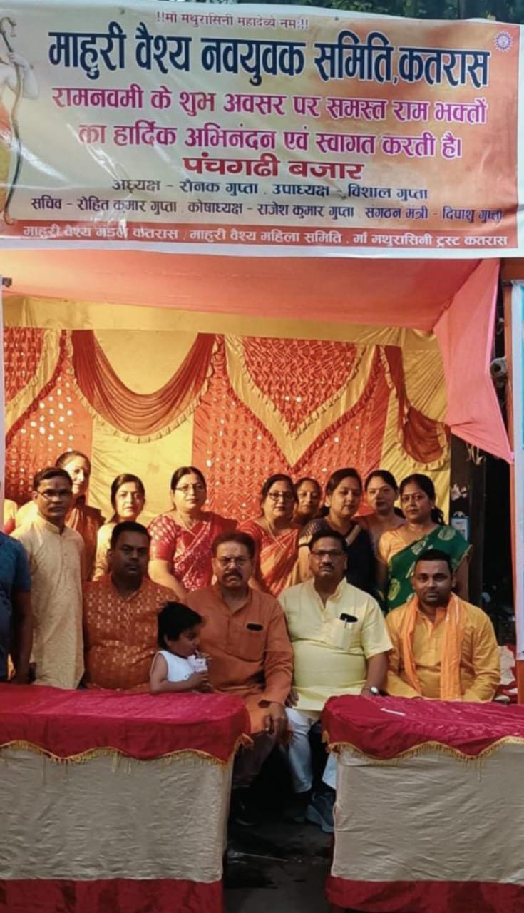 *धनबाद :* माहुरी वैश्य नवयुवक समिति कतरास के तत्वावधान में रामनवमी के शुभ अवसर पर शरबत वितरण कार्यक्रम माहुरी वैश्य नवयुवक समिति कतरास ने किया। रामनवमी के शुभ अवसर पर तीन अलग-अलग स्थानों पर शरबत, ORS, चना एवं गुड़ सभी राम भक्तों के बीच वितरित किया गया। कार्यक्रम को सफल बनाने में माहुरी वैश्य मंडल, माहुरी वैश्य नवयुवक समिति, माहुरी वैश्य महिला समिति और मां मथुरासीनि ट्रस्ट के पदाधिकारियों का विशेष योगदान रहा।कतरास मंडल के अंतर्गत आने वाले लगभग सभी क्षेत्रों से सैकड़ों लोग उपस्थित थे।